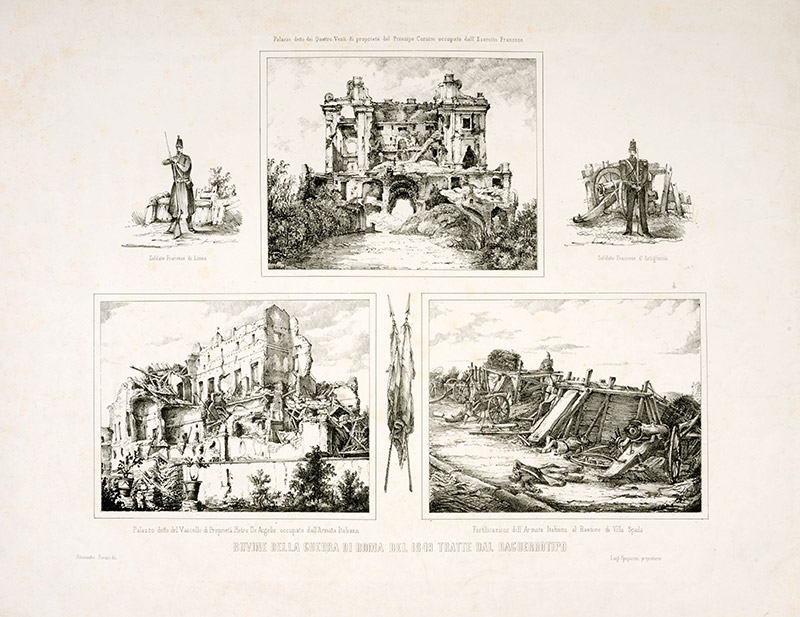 Rovine dopo i combattimenti del 1849. Palazzo dei Quattro Venti